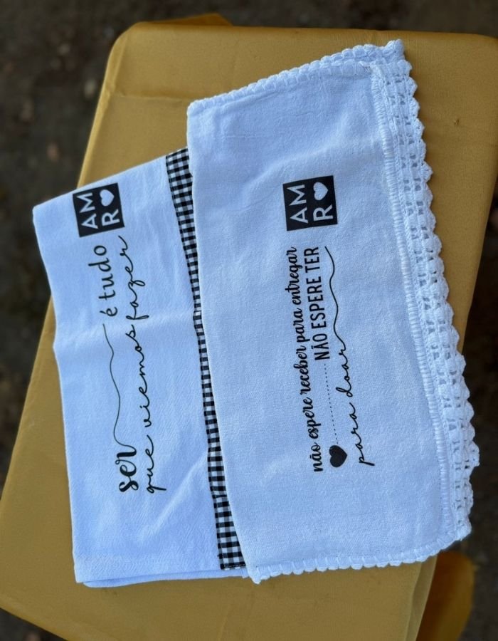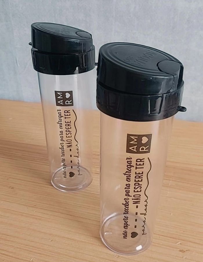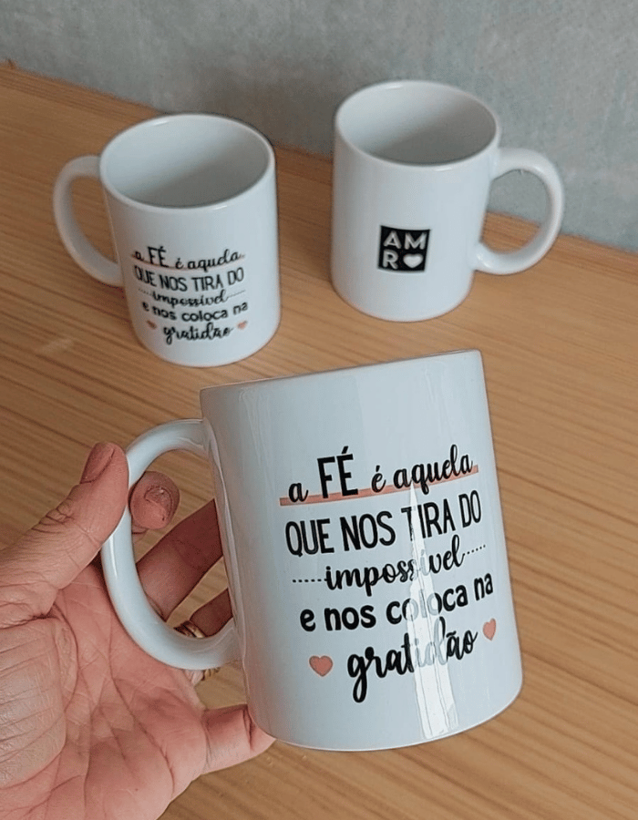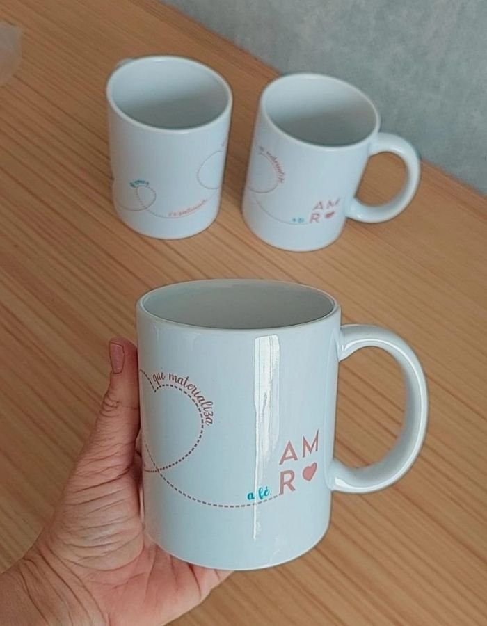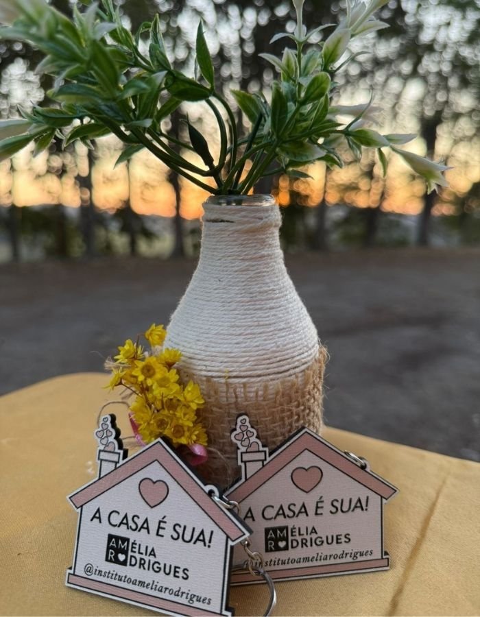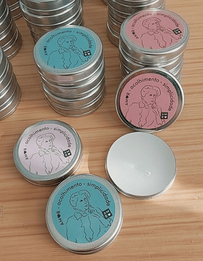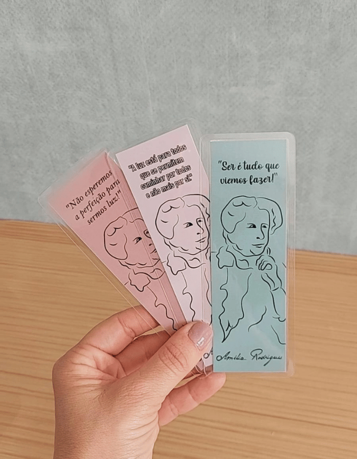 Canetas, Lápis, Latinhas com mensagens de Amélia Rodrigues, Ecobags, Mochilinhas, Chaveiros, Copos, Canecas, dentre outros.